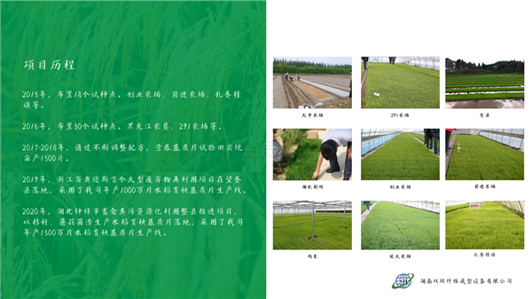 我司2012年應黑龍江某企業(yè)誠邀,開發(fā)出秸稈生物質水稻環(huán)保育秧盤生產(chǎn)機器,經(jīng)過公司全員的努力,于2014年成功的攻克了生物質環(huán)保育秧盆批量生產(chǎn)的機器及工藝難題,目前已經(jīng)在黑龍江地區(qū)持續(xù)銷售多條大小生物質育秧盤生產(chǎn)線。在2018年,與中國農(nóng)業(yè)大學農(nóng)學院及黑龍江國壤農(nóng)業(yè)科技有限公司達成戰(zhàn)略合作關系,就水稻育秧盤項目進行更深一步的合作與研發(fā)。