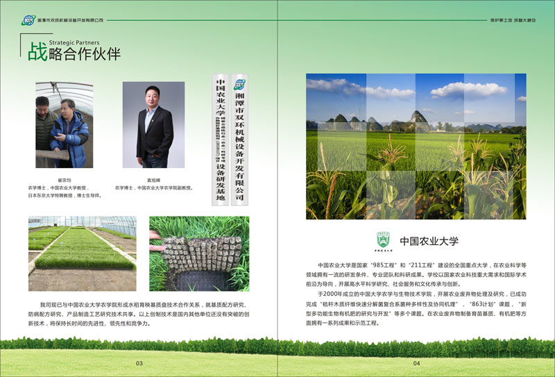 于2000年成立的中國大學(xué)農(nóng)學(xué)與生物技術(shù)學(xué)院,開展農(nóng)業(yè)廢棄物處理及研究,已成功完成“秸稈木質(zhì)纖維快速分解菌復(fù)合系菌種多樣性及協(xié)同機理”,“863計劃”課題,“新型多功能生物有機肥的研究與開發(fā)”等多個課題。在農(nóng)業(yè)廢棄物制備育苗基質(zhì)、有機肥等方面擁有一系列成果和示范工程。我司現(xiàn)已與中國農(nóng)業(yè)大學(xué)農(nóng)學(xué)院形成水稻育秧基質(zhì)盤技術(shù)合作關(guān)系,就基質(zhì)配方研究、防病配方研究、產(chǎn)品制造工藝研究技術(shù)共享。