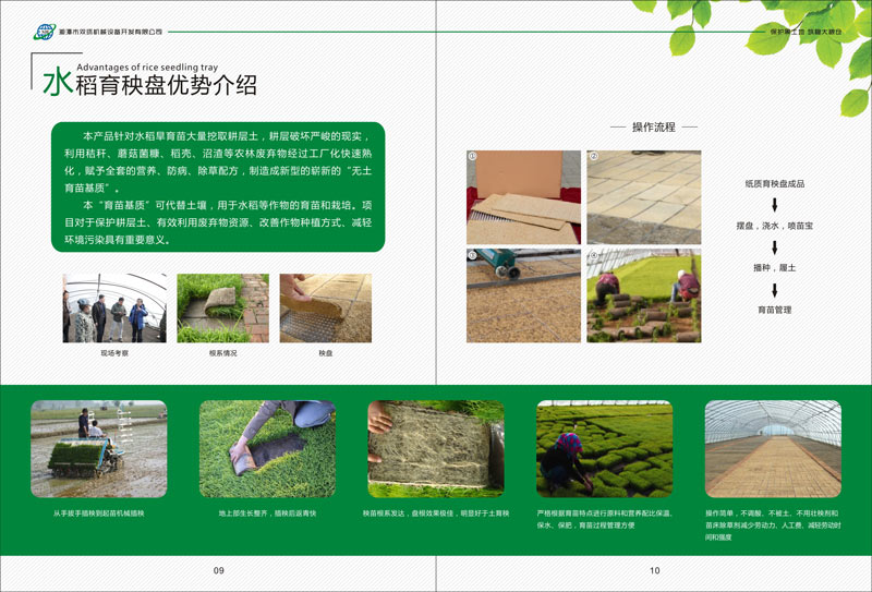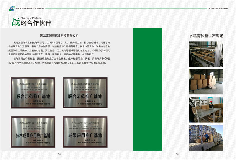 我司2012年應(yīng)黑龍江某企業(yè)誠邀,開發(fā)出秸稈生物質(zhì)水稻環(huán)保育秧盤生產(chǎn)機器,經(jīng)過公司全員的努力,于2014年成功的攻克了生物質(zhì)環(huán)保育秧盆批量生產(chǎn)的機器及工藝難題,目前已經(jīng)在黑龍江地區(qū)持續(xù)銷售多條大小生物質(zhì)育秧盤生產(chǎn)線。在2018年,與中國農(nóng)業(yè)大學(xué)農(nóng)學(xué)院及黑龍江國壤農(nóng)業(yè)科技有限公司達(dá)成戰(zhàn)略合作關(guān)系,就水稻育秧盤項目進(jìn)行更深一步的合作與研發(fā)。