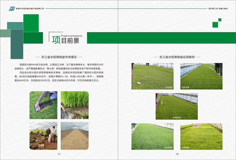 而這些水田大部分采用旱育秧技術(shù)育秧,這就給本項目的推廣提供巨大的市場前景。如1百萬畝就需要4000萬片,按每片零售價1.7元、利潤0.5元計算(保守),其銷售額達(dá)6800萬元,利潤則達(dá)2000萬元。僅東北就有60億元市場,可見市場前景之巨大。